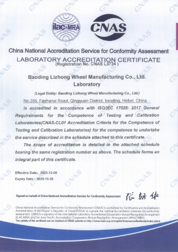 Lizhong Rad hat die Zertifizierung nach ISO 14001 (Umweltmanagementsystem), IATF 16949 (Qualitätsmanagementsystem für die Automobilindustrie), ISO 27001 (Managementsystem für Informationssicherheit), ISO 45001 (Managementsystem für Gesundheit und Sicherheit am Arbeitsplatz), ISO 50001 (Energiemanagementsystem), US General TIP Laboratory Certification, Japan VIA Laboratory Certification, KBA ( Deutschland), DOT (USA), INMETRO (Brasilien), EAC (Zollunion), SNI (Brasilien), BMSI (Taiwan, China), ARAI (Indien) Produktexportzertifizierung. Akkreditiert und auditiert durch Mercedes-Benz VDA, Audi POT, BMW VDA, VW Formel/Toyota NSER, Honda ASSCE, Nissan ASSES, Ford Q1, GM und Volvo MSA Automobilwerke.